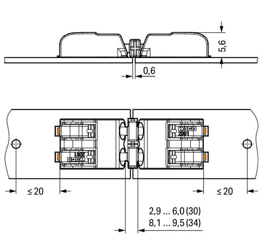 2061-902 WAGO Elemento de conexión; Paso 6 mm; 2 polos; Longitud 30 mm; blanco