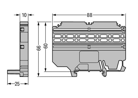 209-148 WAGO Adaptador multimontaje; para conectores hembra y macho; Ancho 25 mm; 3 piezas; gris