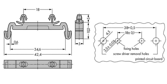209-188 WAGO Base de montaje; apilables a las bornas con brida de fijación; gris