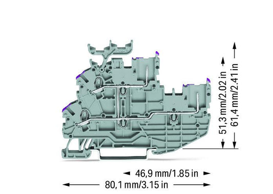 2020-261 WAGO Módulo inicial, hembras de 2 conductores; Push-in CAGE CLAMP®; 1,5 mm²; Paso 3,5 mm; 1 polo; con placa final integrada; 1,50 mm²; gris