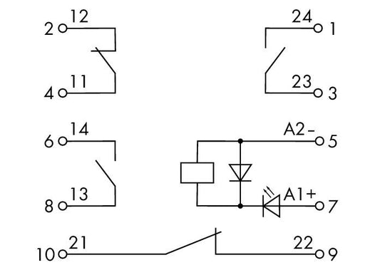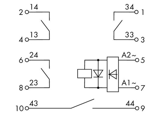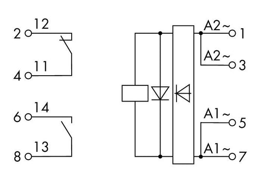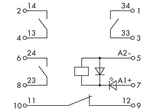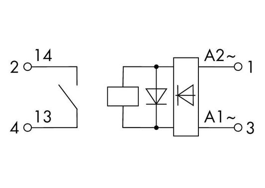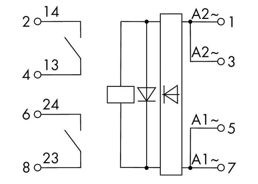 2042-3889 WAGO Módulo con relé; Tensión nominal de entrada 24V ‚¬¦ 230V AC/DC; 2 abierto y 2 cerrado; Corriente permanente límite 3 A; Indicador de estados, verde; 25 mm ancho de montaje