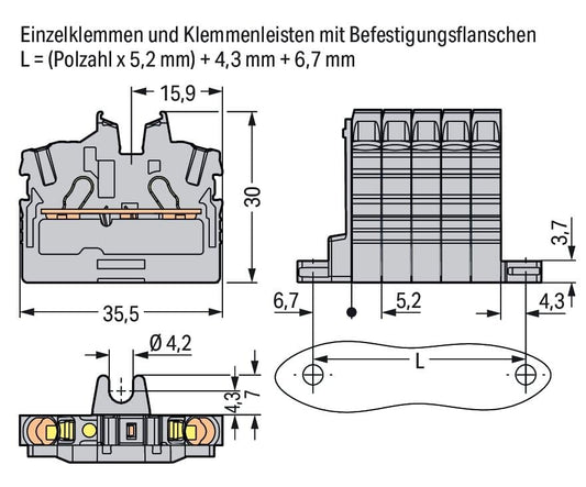 2050-391 WAGO Placa final; para bornas con tetones de fijación; 3,4 mm de grosor; gris