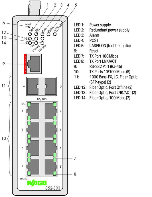 852-1112 WAGO Industrial-ECO-Switch; 8-Port 1000Base-T