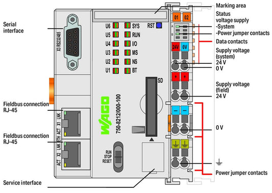 750-8212/040-010 WAGO Controlador PFC200 (PAC); 2ª Generación; 2 x ETHERNET M12, RS-232/-485; extremo