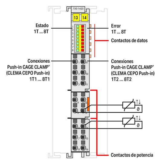 750-1425 WAGO Entrada digital, 8 canales; PTC