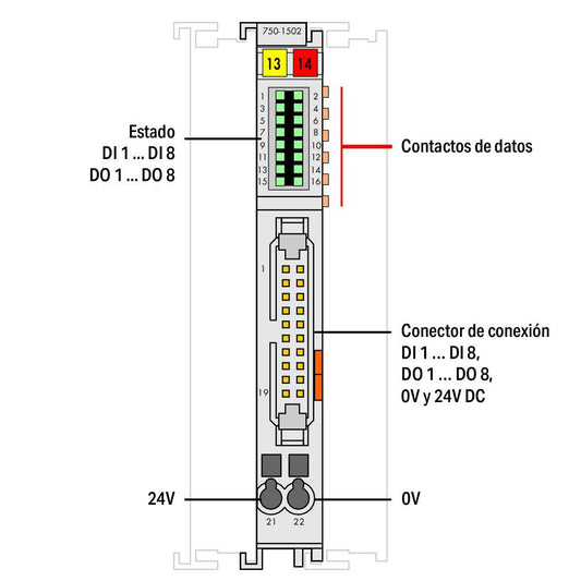 750-1506 WAGO Salida y entrada, 8 canales; 24 V DC; 0,5 A