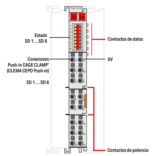 750-1515 WAGO Salida digital, 8 canales; 24 V DC; 0,5 A; Conexión para 2 conductores