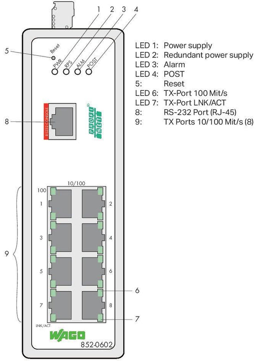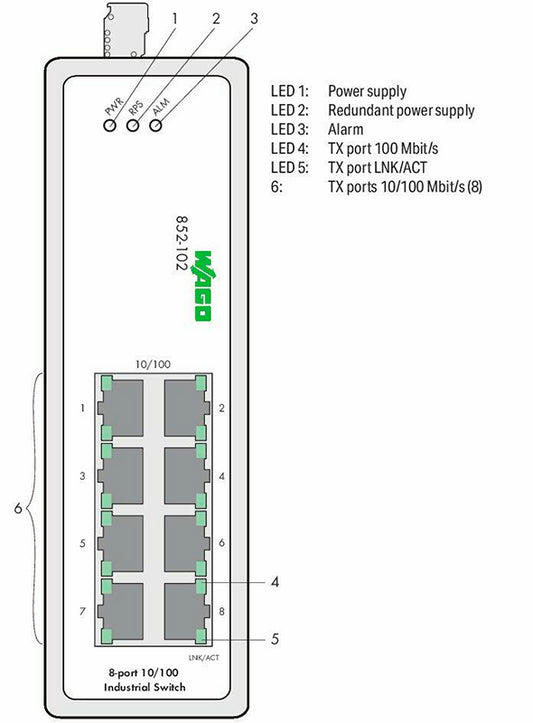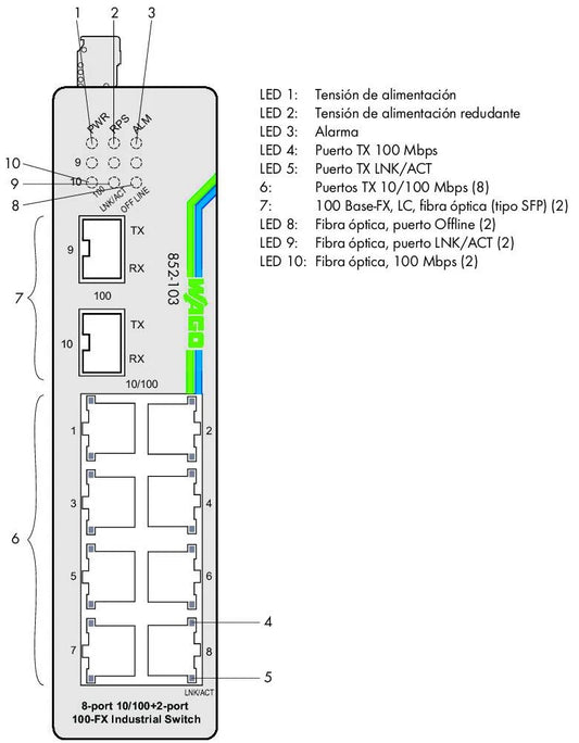 852-102 WAGO Industrial-Switch; 8 puertos 100Base-TX