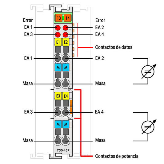 706-2300/408-200 WAGO Línea de sistema; para Siemens S7-300; 2 x 4 entradas analógicas