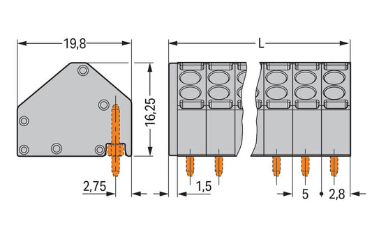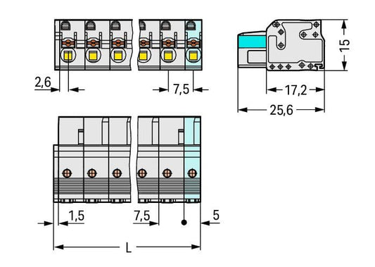 2706-155 WAGO Borna para placas de circuito impreso; 5 polos; Gris