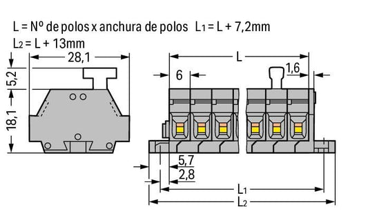 261-109/331-000 WAGO Regleta de bornas para 2 conductores; 9 polos; Gris