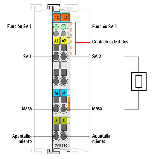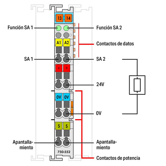 750-552/000-200 WAGO Salida analógica, 2 canales; 0-20 mA; S5