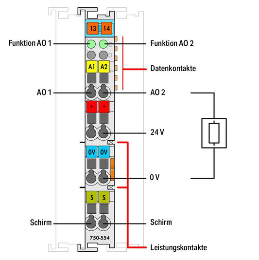 750-554/000-200 WAGO Salida analógica, 2 canales; 4-20 mA; S5