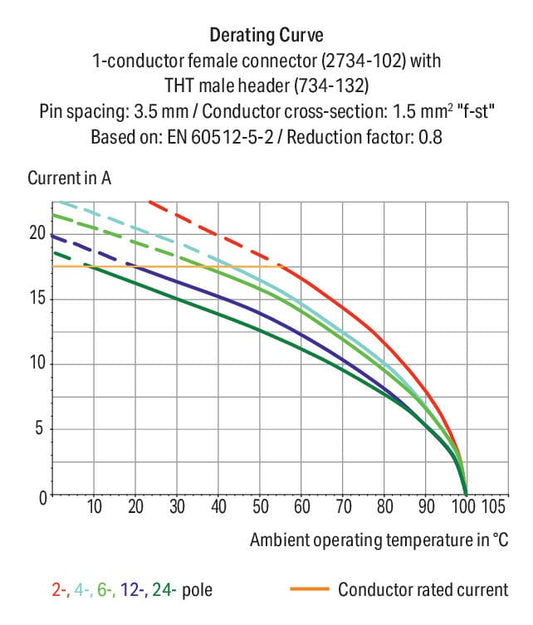 2734-206 WAGO Conector hembra para 1 conductor; 6 polos; Naranja