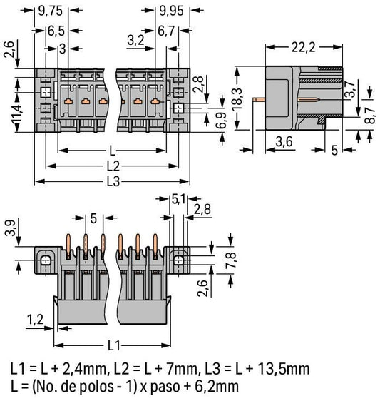 232-270/039-000 WAGO Conector hembra THT; 10 polos; Naranja