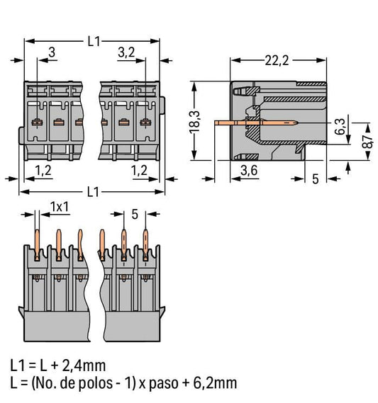 769-644/003-000 WAGO Conector macho THT; Pin soldable de 1,0 x 1,0 mm; 14 polos; Gris