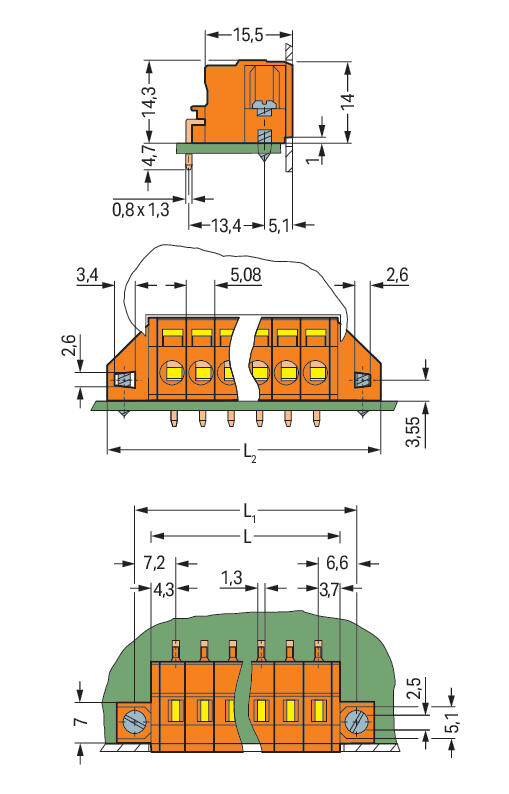 231-641/023-000 WAGO Borna para placas de circuito impreso; 11 polos; Naranja