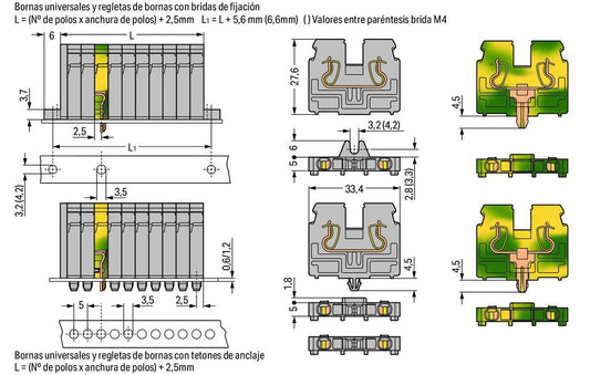 261-255 WAGO Regleta de bornas para 4 conductores; 5 polos; Gris