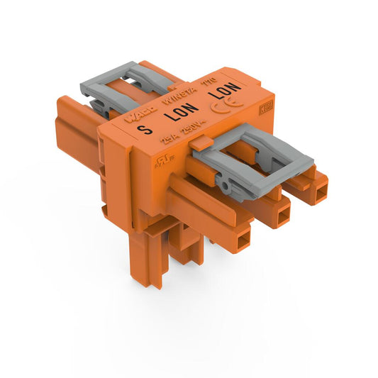 770-667 WAGO Distribuidor en forma de T; 3 polos; Cod. R; 1 entrada; 2 salidas; 2 clips de anclaje; Naranja