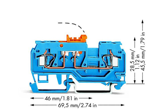 280-876 WAGO Borna seccionable y de medida, 2 conductores; Azul