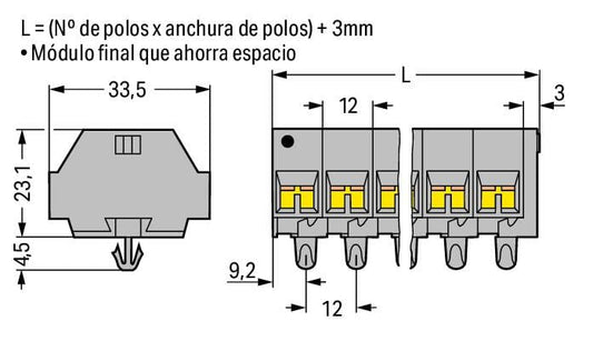 262-253 WAGO Regleta de bornas para 4 conductores; 3 polos; Gris