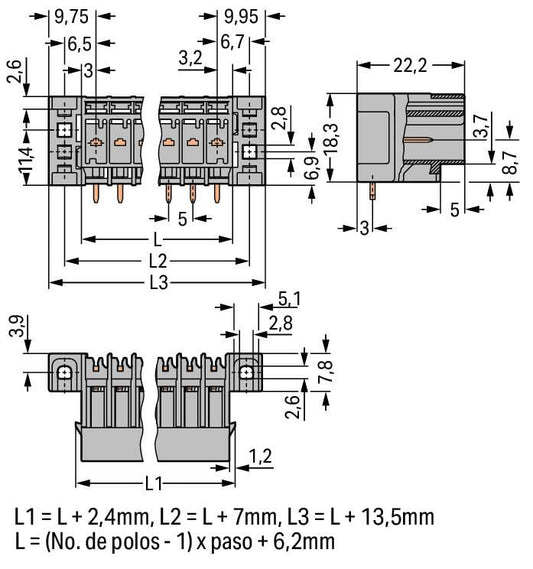 231-377/001-000 WAGO Conector macho THT; 17 polos; Naranja