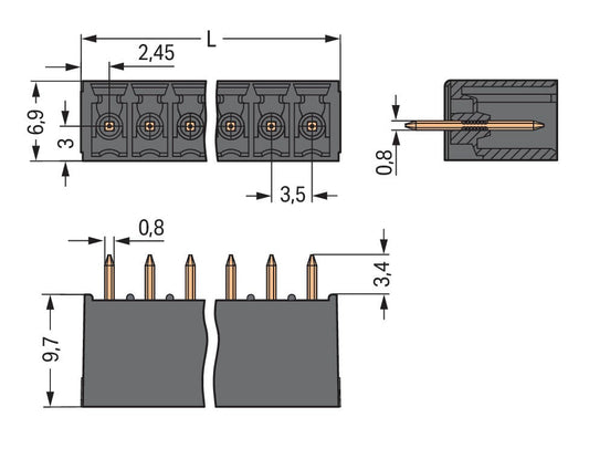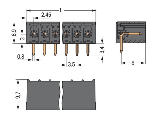 2624-3108 WAGO Borna para placas de circuito impreso; 8 polos; Gris