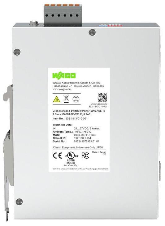 852-1813/010-001 WAGO Switch gestionable LMS; 8 puertos 1000Base-T; 2-Slot 1000Base-SX/LX; 8 * Power over Ethernet