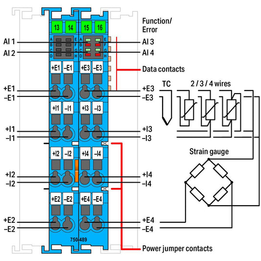 750-489 WAGO 4AI; RTD/TC/Indicador de tensión; 16 bits; Diagnóstico; Seguridad intrínseca