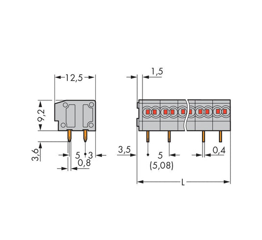235-102 WAGO Borna para placas de circuito impreso; 2 polos; Naranja