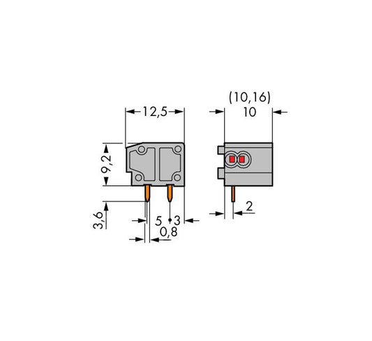 250-502 WAGO Borna para placas de circuito impreso; 2 polos; Gris