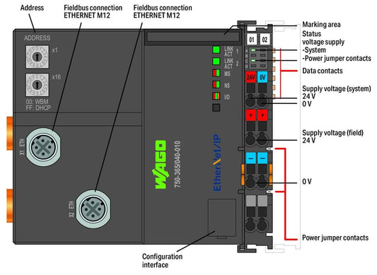 750-365/040-010 WAGO Acoplador de bus de campo EtherNet/IP M12; 4ª generación; extremo