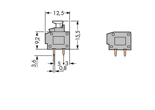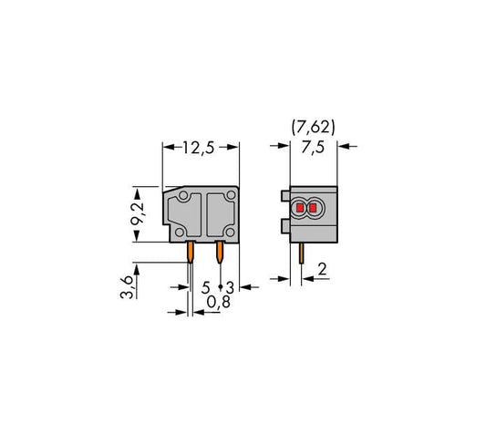 235-551 WAGO Borna para placas de circuito impreso apilable, 2 conductores; 1 polo; Gris