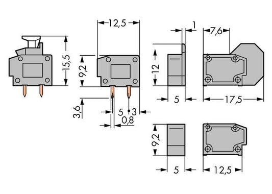 235-711/333-000 WAGO Borna para placas de circuito impreso apilable, 2 conductores; 1 polo; Gris