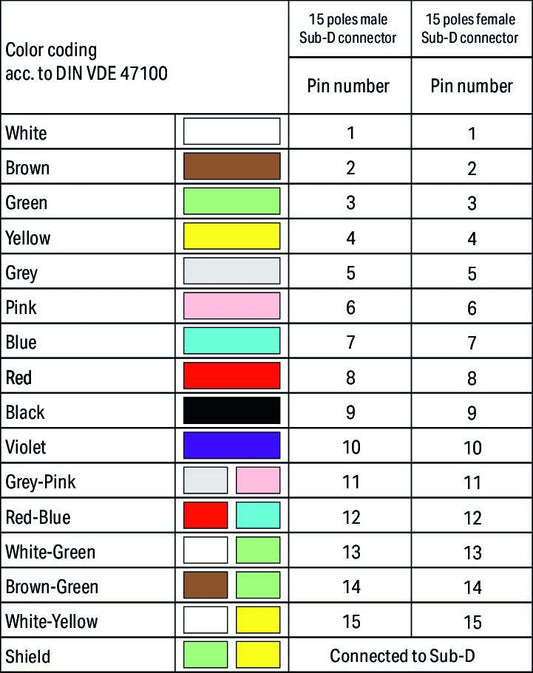 706-160/515-100 WAGO Cable de conexión; 15 polos; Sub-Min-D; Conector macho y hembra; 15 polos; Sub-D