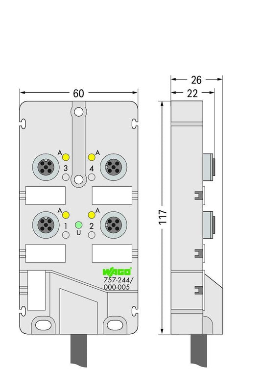 757-244/000-005 WAGO Módulo repartidor para sensores/actuadores M12