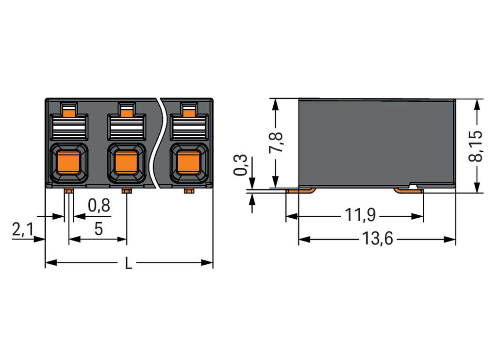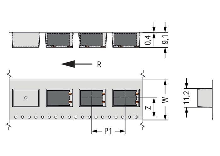 Borna para placas de circuito impreso; Tecla; 1,5 mm²; Paso 5 mm; 4 polos; Push-in CAGE CLAMP®; en la banda; 1,50 mm²; negro