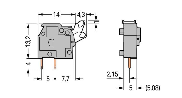 255-742 WAGO Borna para placas de circuito impreso apilable; 1 polo; Gris oscuro