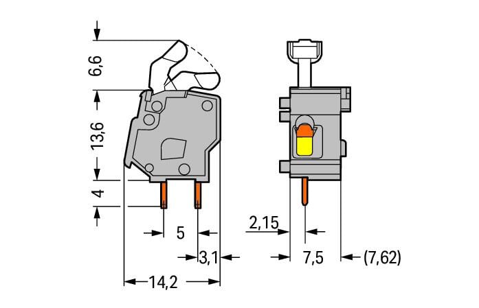 257-853 WAGO Borna para placas de circuito impreso apilable; 1 polo; Gris claro