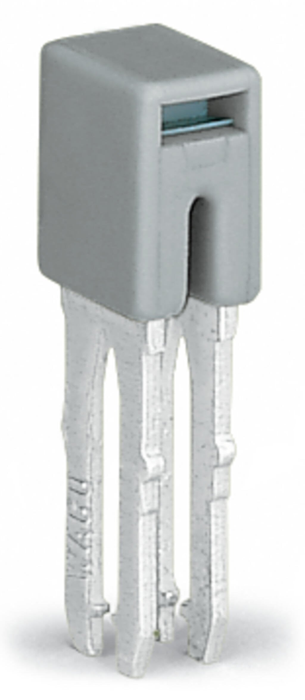Puente aislado de color gris, diseñado para interconectar bornas en riel DIN de manera segura y eficiente. Facilita el reparto de potencial eléctrico entre varios puntos, asegurando una distribución confiable de energía o señales. Su diseño aislado ofrece mayor protección y evita contactos accidentales, manteniendo la seguridad en instalaciones eléctricas e industriales