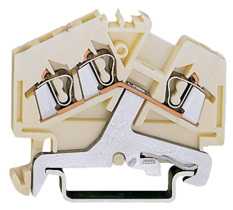 Borna de tierra para 3 conductores, con capacidad de hasta 2,5 mm² y marcaje central para identificación precisa. Diseñada para montaje en carril DIN 35 x 15 y 35 x 7,5, incorpora tecnología CAGE CLAMP® para conexiones seguras, rápidas y sin mantenimiento. Color blanco, ideal para aplicaciones que requieren una distinción visual de la borna de tierra.