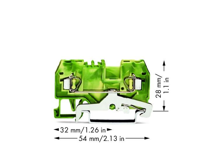 Borna de tierra para 2 conductores de 2,5 mm², adecuada para aplicaciones Ex e II, con marcaje central para fácil identificación. Compatible con carriles DIN 35 x 15 y 35 x 7,5, incorpora sistema CAGE CLAMP® que garantiza conexiones rápidas y seguras. Su color verde-amarillo facilita la identificación de la tierra, proporcionando seguridad, confiabilidad y orden en instalaciones industriales