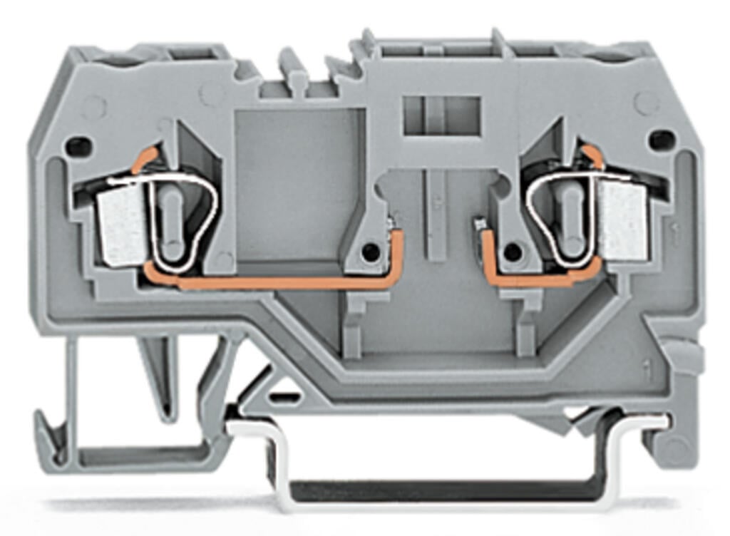 Borna base para 2 conductores de 2,5 mm², diseñada para montaje en carriles DIN 35 x 15 y 35 x 7,5. Incorpora sistema CAGE CLAMP®, que asegura conexiones rápidas, seguras y sin necesidad de herramientas. Su color gris garantiza una integración uniforme en tableros eléctricos, aportando organización, confiabilidad y facilidad de mantenimiento en aplicaciones industriales.