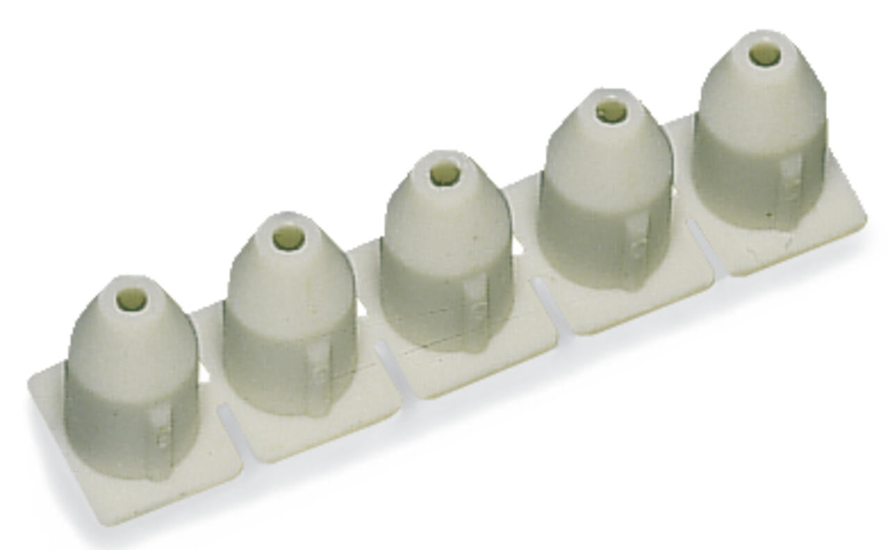 Embudos aislantes de color gris claro, diseñados para conductores de 0,25 – 0,5 mm², presentados en 5 unidades por tira. Facilitan la conexión segura de cables en bornas, ofreciendo aislamiento eléctrico confiable y protegiendo contra contactos accidentales. Ideales para instalaciones organizadas y mantenimiento seguro en tableros de control y sistemas eléctricos industriales