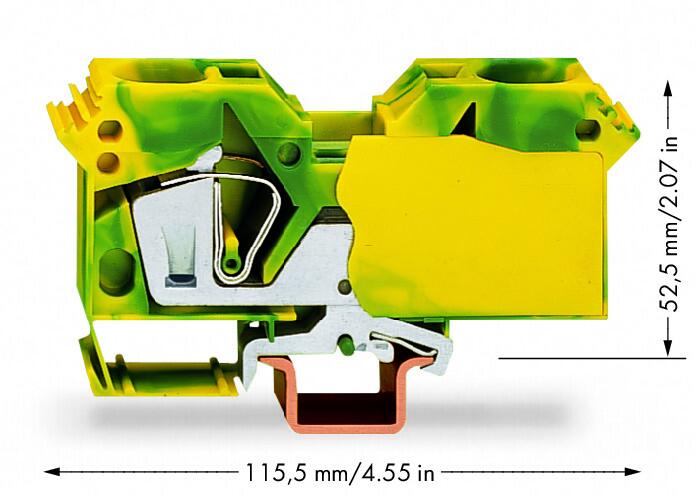 285-607 WAGO Borna de tierra para 2 conductores; verde-amarillo