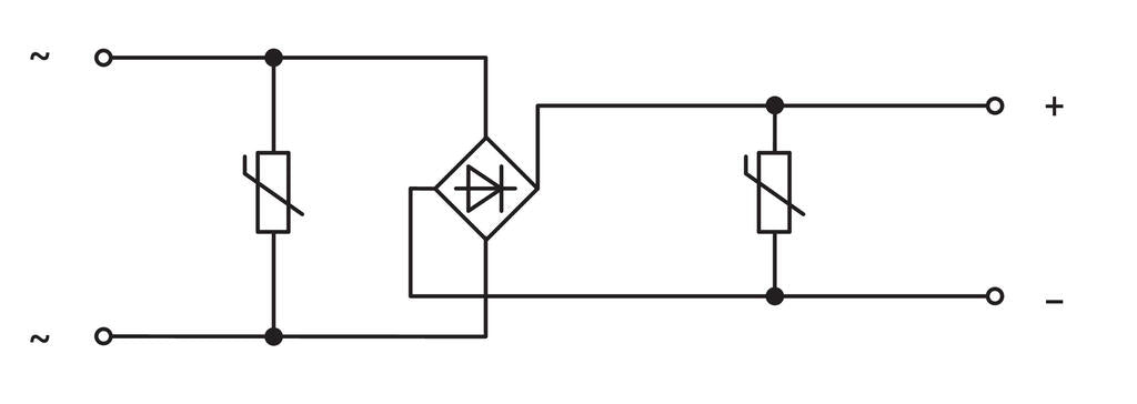 Módulo rectificador con tensión de entrada de 24 V AC, equipado con circuito supresor Varistor para protección contra sobretensiones. Presenta carcasa gris y permite convertir corriente alterna en continua de manera segura y confiable, asegurando la protección de los componentes eléctricos y el funcionamiento estable del sistema