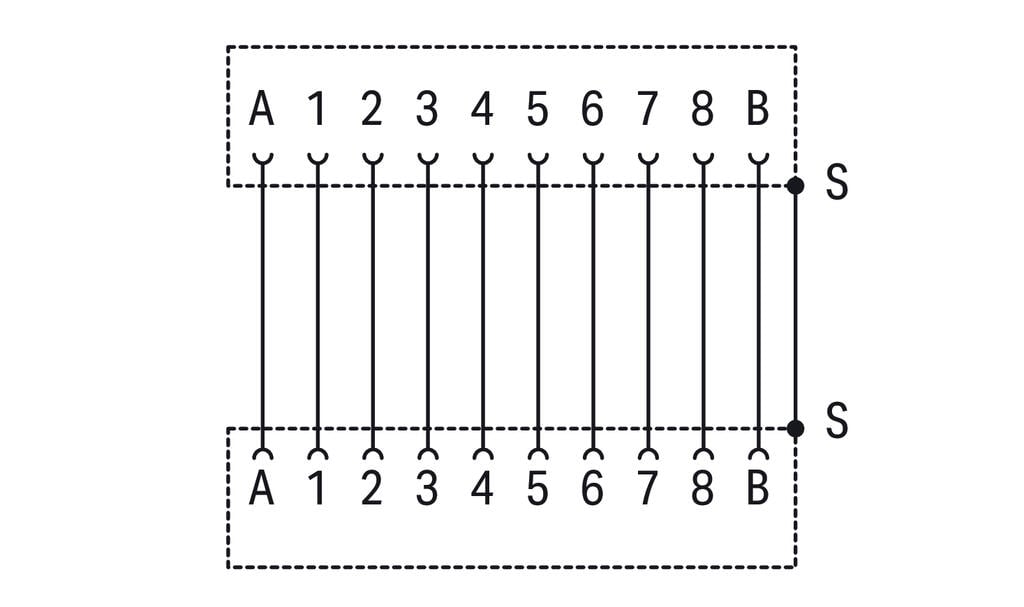 Módulo de transmisión con conectores RJ-45 y contactos de potencia, compatible con cableado categoría 5. Incluye zócalo de montaje para una instalación segura y ordenada, asegurando transmisión de datos confiable y soporte de corriente adicional en redes industriales o sistemas de automatización