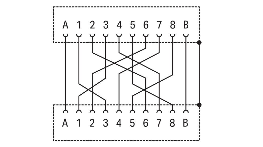 Módulo de transmisión con conectores RJ-45 y contactos de potencia tipo cross-over, compatible con cableado categoría 5. Incluye zócalo de montaje para instalación segura y ordenada, permitiendo transmisión de datos confiable y manejo de corriente adicional en redes industriales o sistemas de automatización que requieren conexiones cruzadas